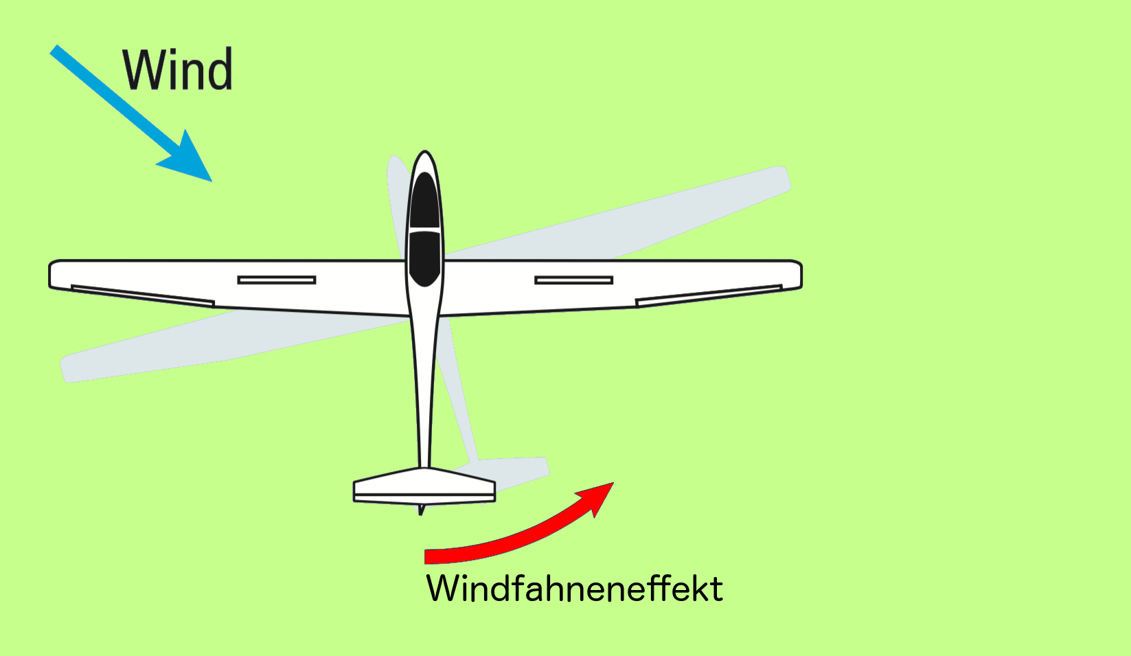 - beim Ausrollen mit dem Seitenruder dem Windfahneneffekt entgegenwirken
