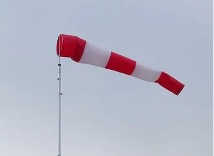 Windsack und Windfahne zur Anzeige der Windrichtung, Angabe in Grad der Kompassrose