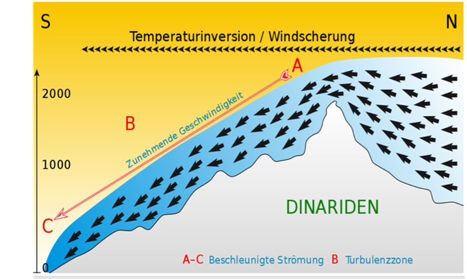 Die Bora kann insbesondere in den Wintermonaten als extremer und langanhaltender Wind mit Geschwindigkeiten von bis zu 200 km/h auftreten.