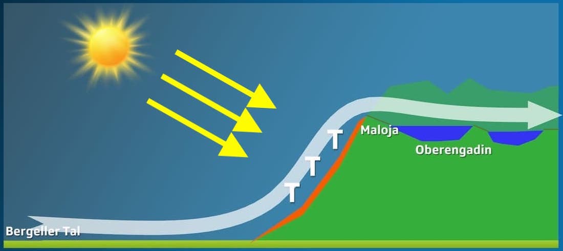 Ein durch thermische Zirkulation verursachter Talwind von der Poebene ins Engadin