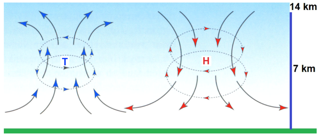 Globale Luftzirkulationen, Luftzirkulationen zwischen Hoch- und Tiefdruckgebieten