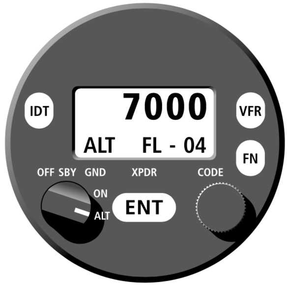 Der Transponder verfügt außerdem über eine IDENT-Taste. Es könnte sein, dass die Flugsicherung dich anweist, diese Taste zu drücken: "Squawk ident!“ Du drückst dann einmal die IDENT-Taste und deine Position leuchtet eine Zeit lang auf dem Bildschirm der Flugsicherung auf.