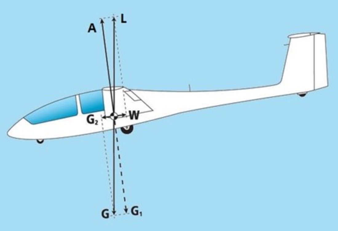 Mit größer werdender Querneigung geht die Auftriebserhöhung und somit die Geschwindigkeitserhöhung einher