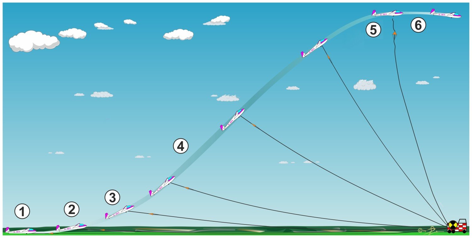 - Sind andere Luftfahrzeuge im Start oder Landeanflug, ist normalerweise der Windenstart nicht erlaubt. Es gelten im Einzelfall die Vorschriften des Flugplatzes.