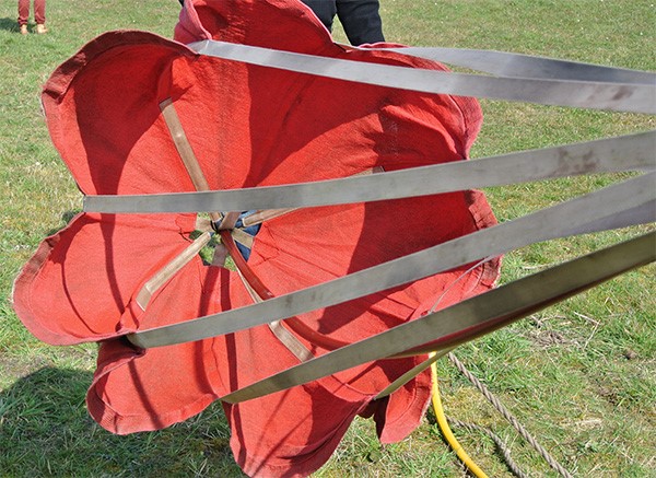 - Versteiftes Vorseil von mindestens 3 m Länge (zur Verhinderung von Schlaufenbildung und Verfangen am Segelflugzeug). Zur besseren Erkennbarkeit sollten die Versteifungsschläuche die gleiche Farbe wie die verwendeten Sollbruchstellen haben.