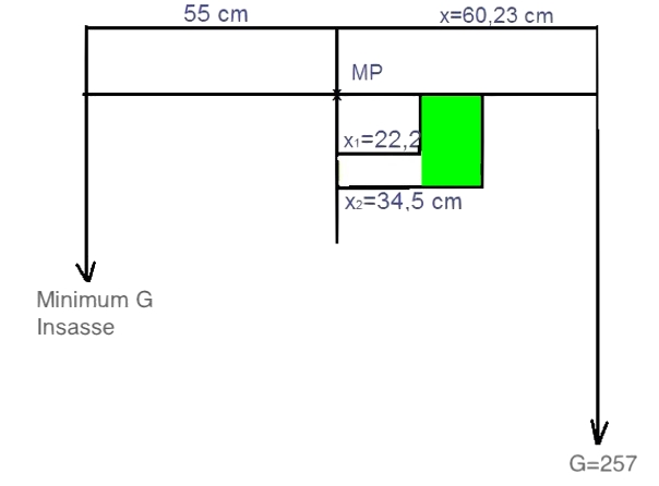Zu beachten ist, dass XP mit negativem Vorzeichen in die Gleichung eingesetzt werden muss, da sich der Pilotensitz vor dem Bezugspunkt befindet.