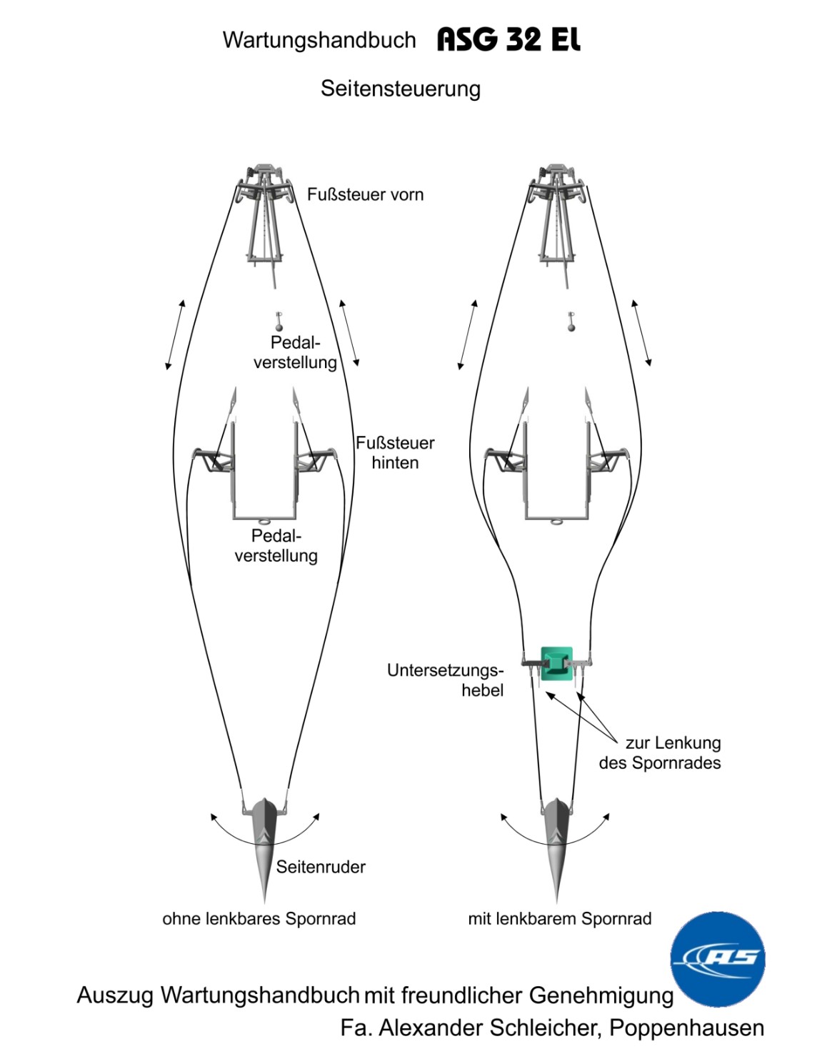 Die Steuerung (das Steuerwerk) dient der Übertragung. der Steuerbewegungen, die der Pilot an den Bedienelementen ausführt (Steuerknüppel, Pedale, Brems- und Wölbklappenhebel), auf die Steuerflächen (Ruder und Klappen). So bewirkt z.B. ein Ziehen des Steuerknüppels nach hinten, ein Anheben der Flugzeugnase und damit eine Vergrößerung des Anstellwinkels der Tragflächen.