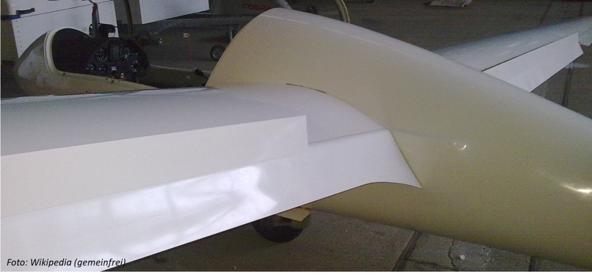 An der Hinterkante der Flügelunterseite zur Widerstandserhöhung angebrachte Klappen