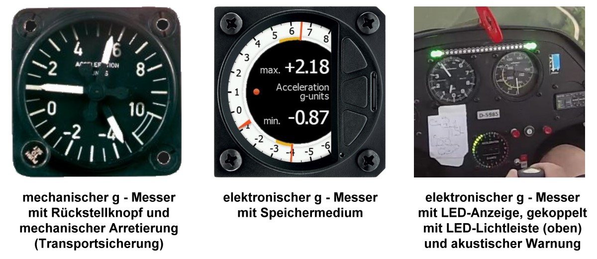 Diverse g-Messer (Fotos: IRL-Shop, Förderverein Segelkunstflug)