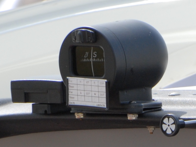 Im schiebefreien Geradeausflug wie auch im schiebefreien Kurvenflug steht die Kugel daher immer zwischen den Markierungsstrichen in der Mitte des Glasröhrchens. Im Gegensatz zum Magnetkompass wird seine Anzeige durch Beschleunigungs- und Kurvenfehler nicht gestört. Bei Inbetriebnahme muss der Kreisel azimutal (nach Norden) und horizontal ausgerichtet werden. Nebenstehend: Kurskreisel einer Cessna 172 |