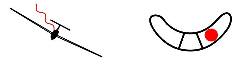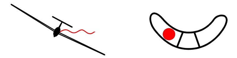 Anzeige eines schiebefreien Gerade- und Kurvenflugs, in Segelflugzeugen ist hierfür der Faden vorne auf der Cockpithaube gebräuchlich
