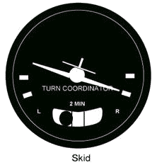 Vorsicht: Bei großer Querneigung zeigt der Wendezeiger zu wenig an, für 'P = 90° wird die Anzeige Null.