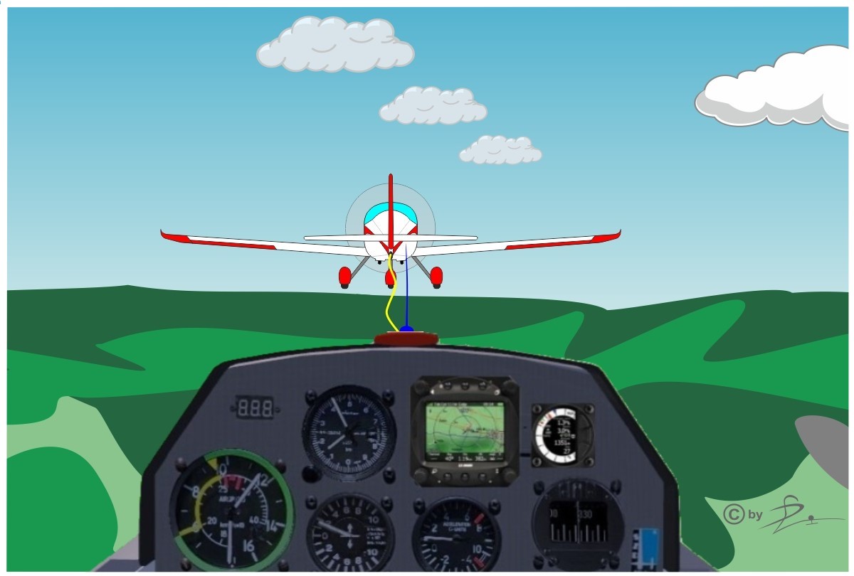 Normalerweise stehen F-Schleppseile nicht so stark unter Spannung, dass das og. geschehen kann, Bei einem normalen Ausklinkvorgang fällt das Seil einfach nach vorne, unten weg. In besonders ruhiger Luft und bei einem besonders ruhigen F-Schlepp kann es sogar vorkommen, dass der Schlepppilot das Ausklinken nicht merkt, einfach weiterschleppt und weiter steigt. Hier solltest du sofort über Funk melden, dass du ausgeklinkt hast. Beobachte dabei die Schleppmaschine vor und über dir, bis sie bei ihrem Abstieg genügend entfernt und unterhalb von dir ist.
