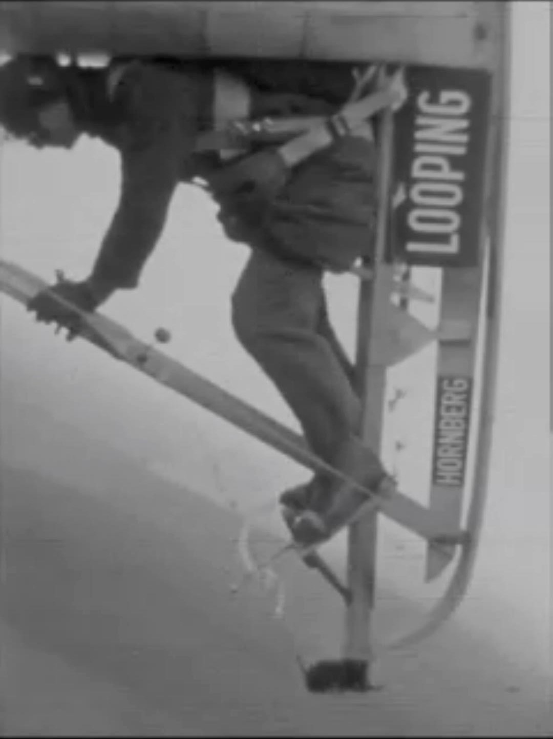 Vermutlich erster mit einer Flügelkamera gefilmter, dokumentierter Looping im Segelflug. Der Flug fand im Jahr 1934 statt. Pilot war der "Segelfliegervater" Wolf Hirth. Er flog über dem Segelfluggelände Hornberg auf der schwäbischen Alb. |