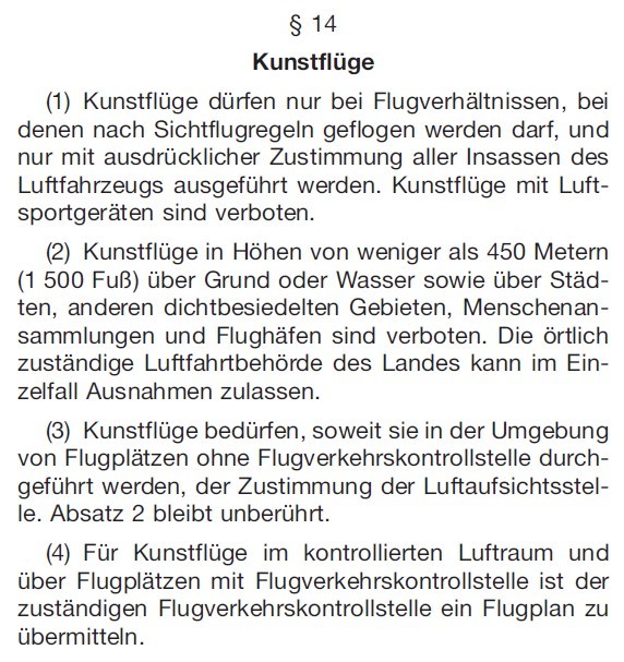 Soweit zu den rechtlichen Vorgaben beim Segelkunstflug