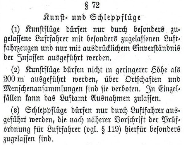 Auch damals mussten die Kunstflug-„Luftfahrer“ zugelassen sein, ebenso wie die Segelflugzeuge, die Kunstflug machen durften. Es hat sich also grundsätzlich nicht viel geändert, lediglich die „Kriterien“ wurden angepasst.