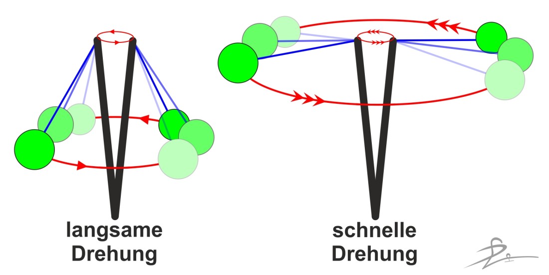 Jetzt kannst du den Trudelvorgang mal von oben betrachten. Zum besseren Verständnis ist er nicht perspektivisch gezeichnet.
