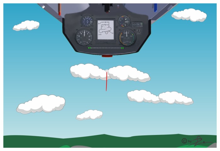 | Nun checkst du Fahrtgeräusche, Flugsicht, ungewöhnliche Steuerdrücke. | |||
