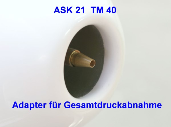 | Hier wurde eine kleine Änderung an der Staudruckabnahme gemacht. Diese Änderung kann mit der TM 40 nachgerüstet werden. Dabei handelt es sich lediglich um einen fest installierbaren Zusatzadapter für den Gesamtdruck, also eine Zusatzdüse, die auf dem Staurohr angebracht wird. | ![]() |