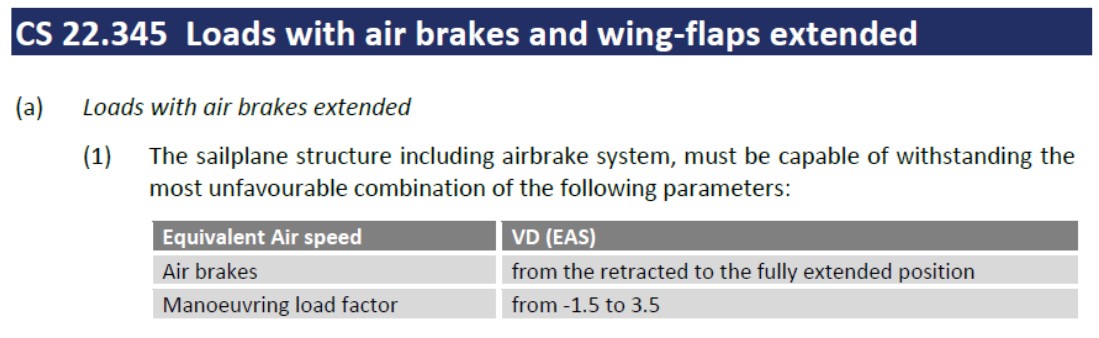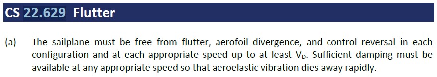 | Die strukturelle Integrität des Flugzeuges muss so ausgelegt sein, dass bei VD für Segelflugzeuge der Kategorie A Seiten- und Höhenruder zu einem Drittel ausgeschlagen werden können. |