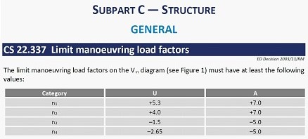 Diese Formel geht von der VA aus und entspricht in etwa der EASA-Vorschrift CS 22.349.