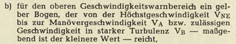 Dann erfolgte mit der Einführung von Motorseglern die Bauvorschrift LFSM (Lufttüchtigkeitsforderungen für Segelflugzeuge und Motorsegler vom Oktober 1975) die Festlegung des gelben Bereichs nach Abschnitt 7 Ziff 7221 Buchstabe b